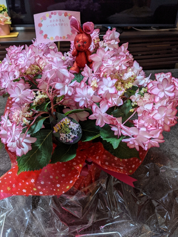 ゴールデンウィークや子供の日、母の日とイベント事が多かった5月ですが、今年も我慢の連休となってしまいましたね。私も家族集合!! とはいかず去年に引き続き、娘夫婦からアジサイの花、息子夫婦からはバラの花が届きました。