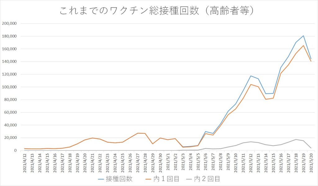 特に高齢者の方々への接種はまだ始まったばかりですので数は少なくなっておりますが、少しずつでも増え安心して過ごせる日々が来ることを願っております。
