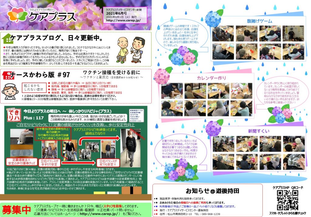 ケアプラス道後持田新聞 2021年6月号が更新されました!