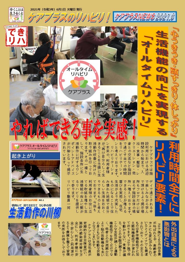 コロナ禍による外出自粛が叫ばれる中、高齢者の方々にも変化がみられているとメディアでも報道されており、その主たるものは身体機能低下に加え認知機能低下が言われております。コロナ禍で体を動かさない、食事が偏る、人との会話が減る・・・こんな生活が続くと運動機能低下を招くだけでなく、他者との交流減少により脳の活動機会も失い心身ともに不活動な状態となってしまいます。
