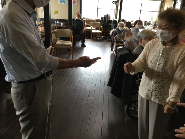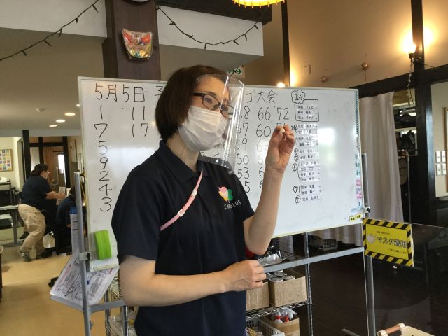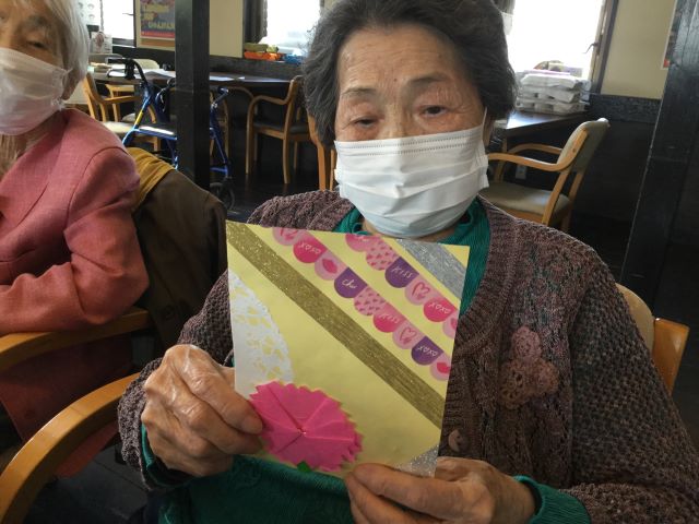 この日は母の日ですので日頃の感謝を込めて、女性利用者様方にビンゴになった方から母の日カードをサプライズプレゼントさせていただきました。皆様、「嬉しいー!」と笑顔で受け取って下さいました。