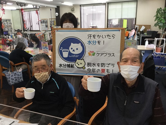 ケアプラス大洲では入浴、リハビリ後はもちろんの事、一日を通して適宜『水分を取って下さいね♪』とお伝えしていますが、皆さまと楽しい時間を共有させて頂く為、今後も『もうわかっとるよ(^^♪』と仰られてもお伝えしていこうと思っています(*^-^*)笑