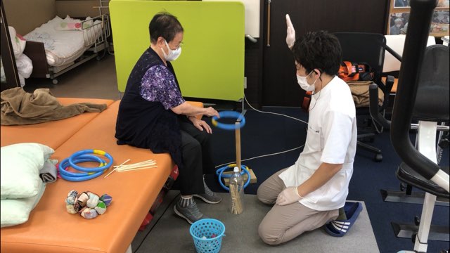 さて、先日ご利用者様とゲーム感覚で行える機能訓練を行いました。