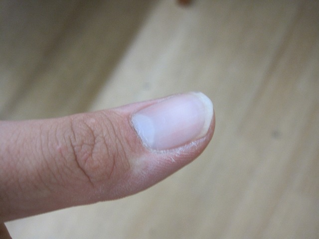 (親指の爪を押して赤みが戻るのが遅い)親指の爪をギュッと押したあと赤みが戻るのに3秒以上かかったら脱水の疑いがあります。