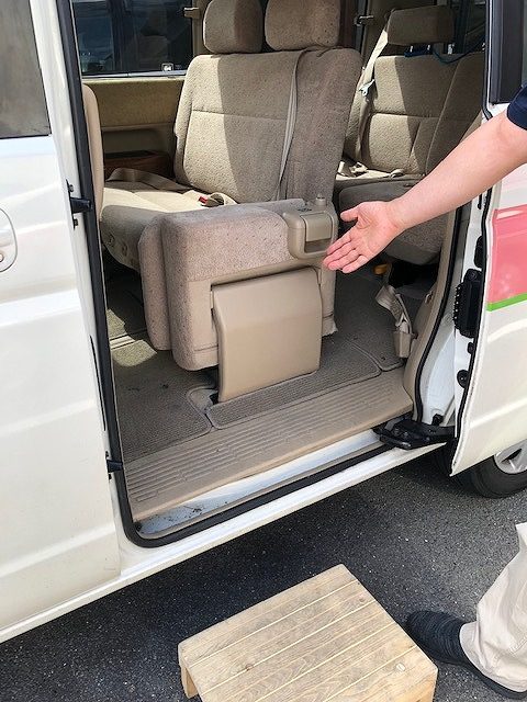 道路はもちろん、車のステップも濡れておりますので、「ゆっくりでいいですよ」「下が濡れていますので気をつけて上がりましょう!」