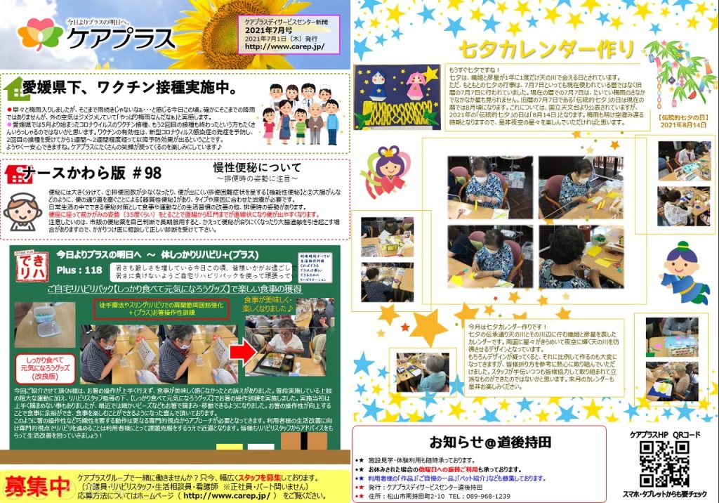 ケアプラス道後持田新聞 2021年7月号が更新されました!