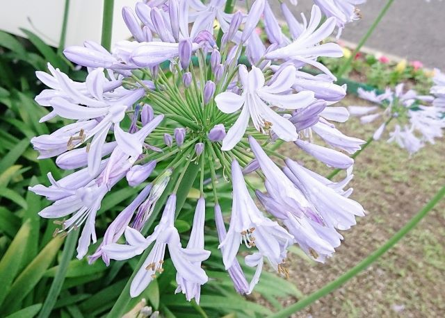 さて梅雨の時期の花といえば紫陽花を思い浮かべる方が多いかと思いますが、アガパンサスという花をご存じですか?紫陽花と同じく今の時期とても綺麗に咲いています。アガパンサスと聞き慣れない名前ではありますが、【愛の花】という意味が込められていて意味も素敵です。5月下旬から7月頃の花で、花茎をすっと伸ばした先に数十輪の花を放射線状に咲かせます。ジメジメとした梅雨時期に涼やかな紫の花がケアプラス垣生や送迎途中に綺麗にお庭に咲いているのを見かけ「あれはなんていう花?」と興味を持たれる利用者様もいらっしゃいます。降り出すと嫌な雨ですが、雨粒をまとったアガパンサスはとても綺麗で下がり気味な気分を上げてくれるような気がします。