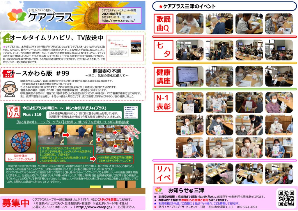 お休みするのはもったいない!ケアプラス三津のイベント・レクリエーションにご期待ください♪
