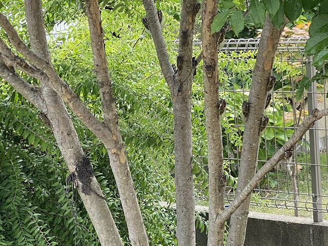 ケアプラス三津の木々には蝉がとまりこれでもかと言わんばかりにアピールをしています。