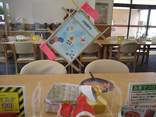 午前中の創作レクリエーションではとても透明感のある色合いやイラストの飾りを作られており傍から見てもとても涼を感じました。