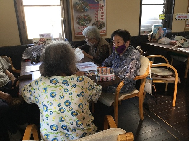 お家での出来事、お孫様の話、飼っている猫の話、健康上の不安等々、利用者様同士また担当職員とお話が弾んでいます。