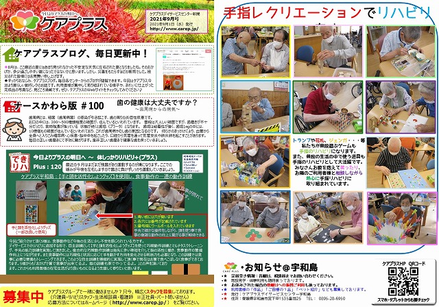 9月も暑さがまだまだ続きますので、引き続き水分補給や手洗いうがいをして元気に過ごしていきましょう。