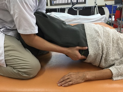 そこでストレッチや徒手によるマッサージで四肢の柔軟性の改善を行い下肢や体幹を中心に筋力トレーニングを行っていただいています。