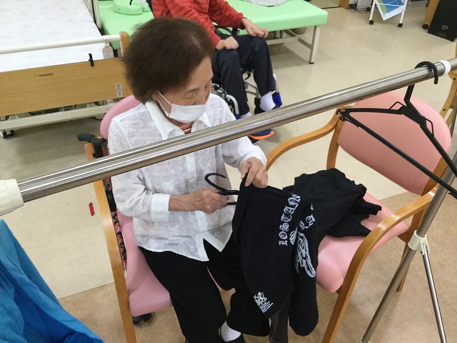 T様は、「体調に応じて洗濯をする。」という生活目標を立て日々リハビリに取り組まれております。T様は身体の筋力が弱くふらつきもあるため
