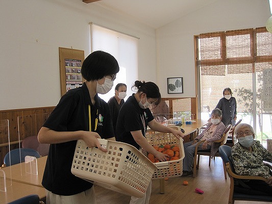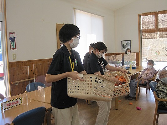 しかし、ご利用者様からのリクエストもあり、先日、ご利用者様が少ない日曜日に「秋の実り玉入れ大会」を開催しました。