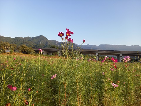 皆様食欲の秋だったり、柿、スポーツの秋、秋桜、御神輿、お祭りなどなどたくさん答えていただきました。秋桜といえば東温市に秋桜がたくさん咲いている秋桜畑という場所がございます。利用者様も「秋桜畑に行ってたくさん秋桜見てきたよー」と言われておりました。私も10月初めに秋桜畑に行き、満開ではなかったですが、綺麗に咲いておりました。
