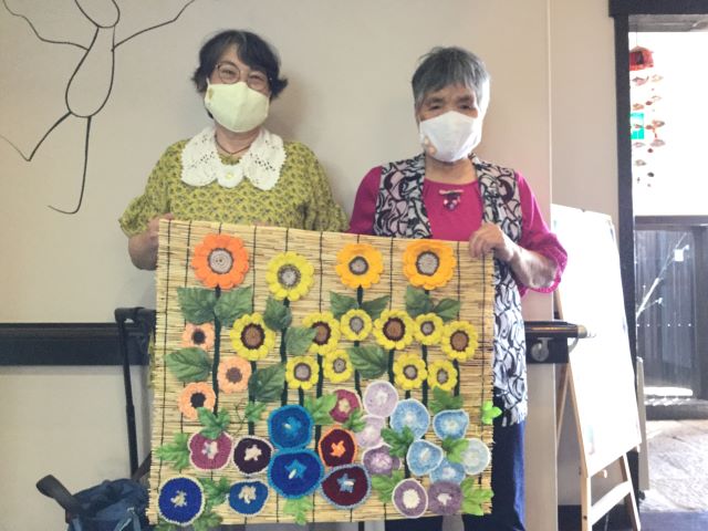 また他の利用者様と協力して作品を作成していただきケアプラス垣生のひとつの宝物となっております。