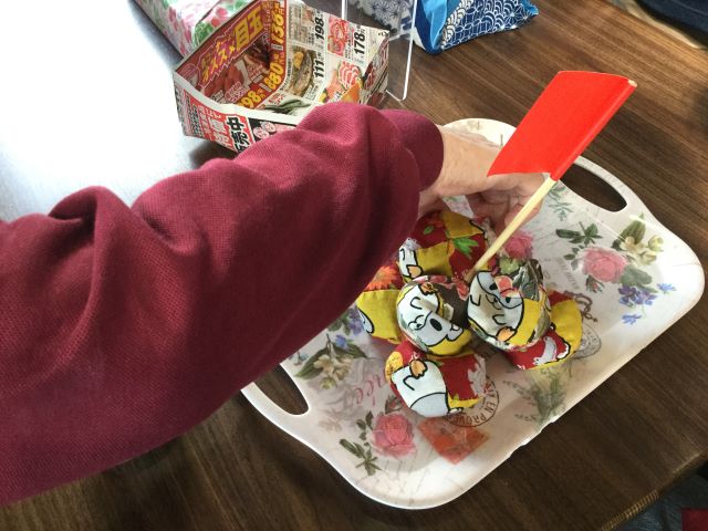 旗を倒さないよう注意しながら、どのお手玉を取るか、皆様、迷いながら対戦されていました。