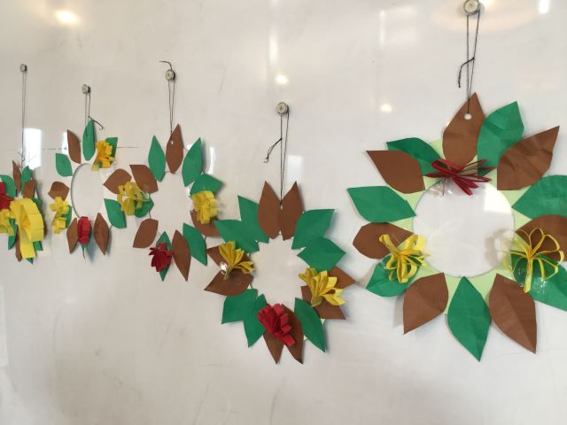 秋のリースも皆様、思い思いに飾り付けられ、素敵な作品が出来上がりました。イチョウがいいですね。