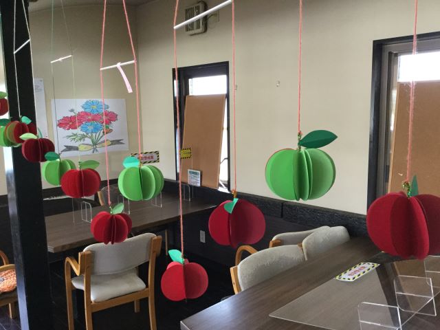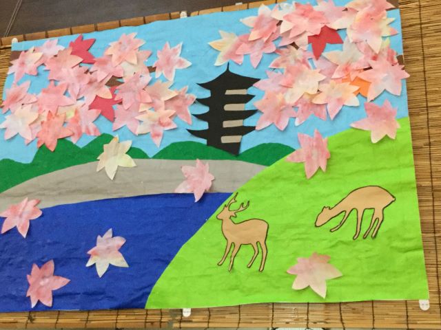 10月に作成していただいた貼り絵は現在、フロアに飾られています。