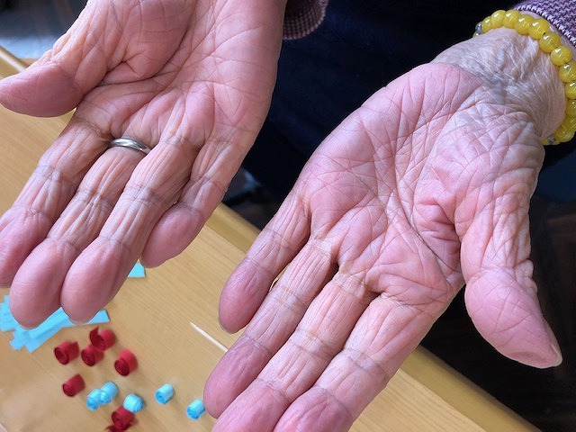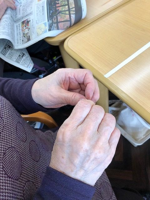 折り紙など作品を作っておられると「かさかかしてきた」「手が乾いてひっかかるね」とお話されていることもあります。