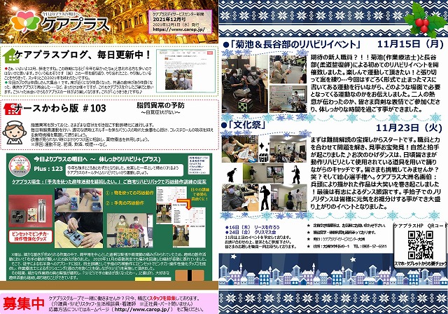 寒さに負けず楽しいお時間をご利用者様と過ごせればと思っていますので、お気軽にお問合せ下さいませ。