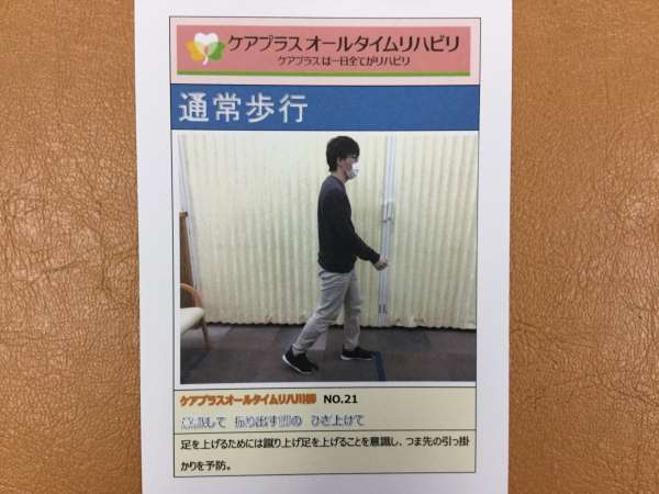 そこから、ご自宅内にある段差や手すりを使って、リハビリで行った動作が同じくできるように、意識づけをしていきます。