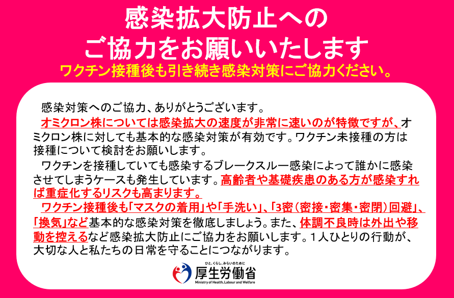 コロナウイルスも変異株が現れようと、回避行動として注意する事は変わらずで、これまで通り