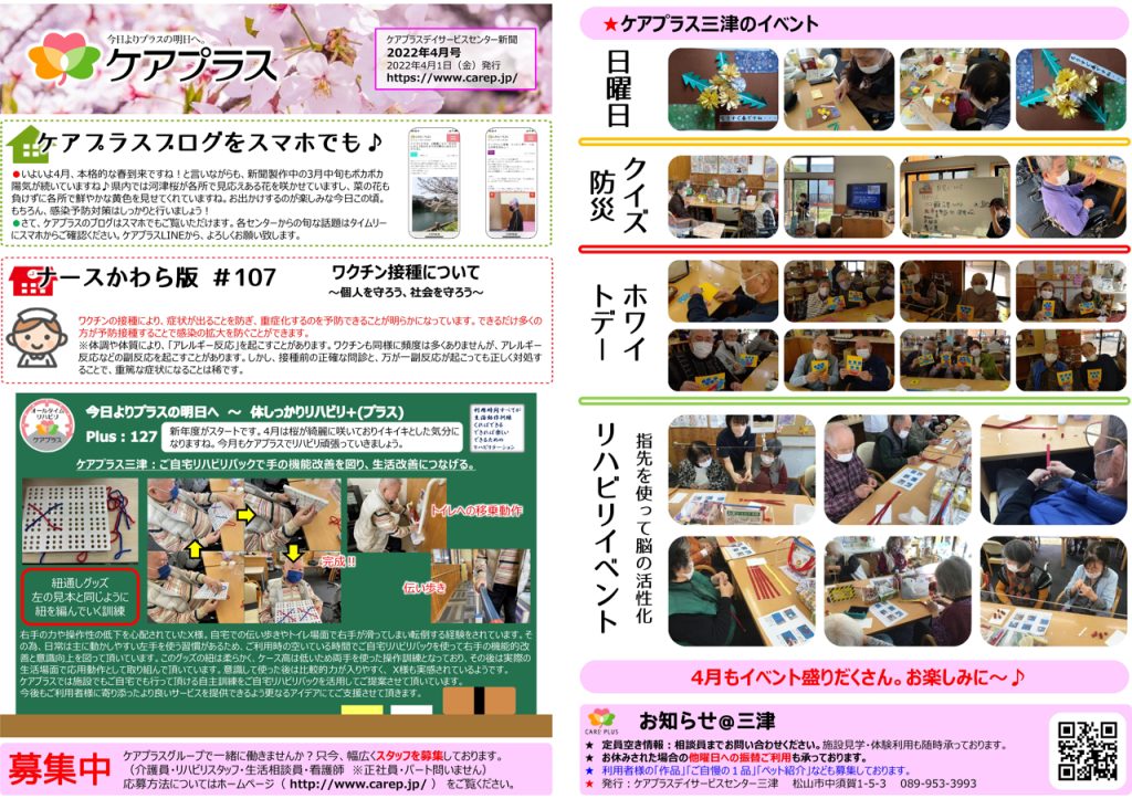 お休みするのはもったいない!ケアプラス三津のイベント・レクリエーションにご期待ください♪