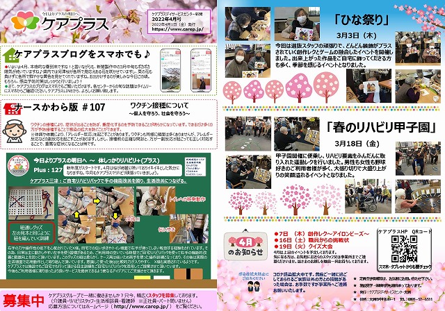 さて、ケアプラス大洲では3月も感染症対策を行いながらイベント開催をいたしました。