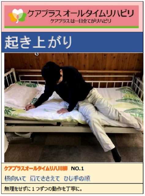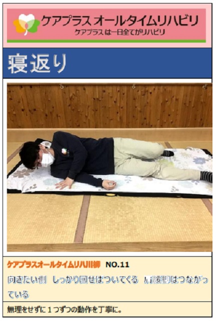 上体の分離運動の訓練等を機能訓練で実施し、正しい起き上がり方法をオールタイムリハビリ川柳でお教えしました。