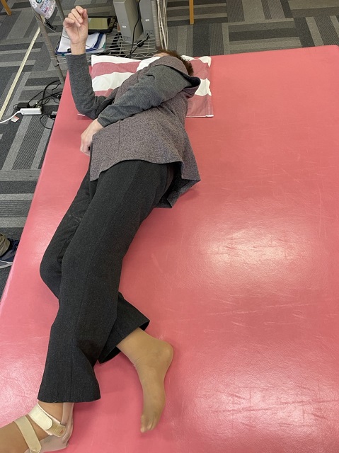それに伴い左肩甲帯をベッドへ押し付けるような形となっていました。