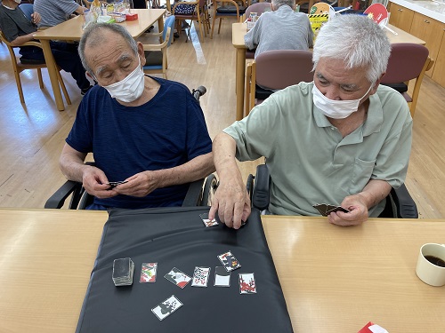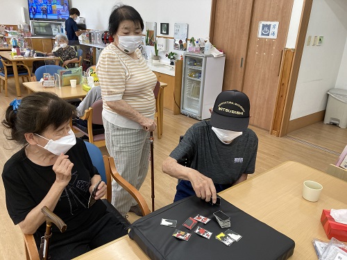 また、花札をされる方も多くいらっしゃいます。「昔はやりよったけど、出来んわ。」と言われる方も実際にやると昔を思い出して勝ち抜いていかれます。