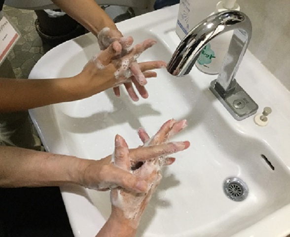 丁寧に手全体から手首にかけて、手洗いを行います。