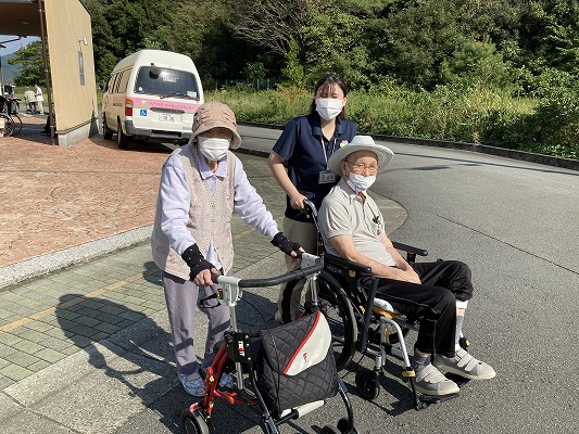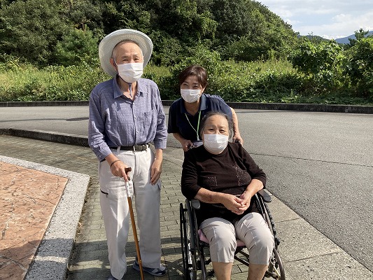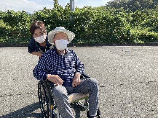 室内よりも屋外が気持ちいいと施設内周辺を屋外歩行、散歩で気分転換を図られている様子をお伝えしたいと思います。