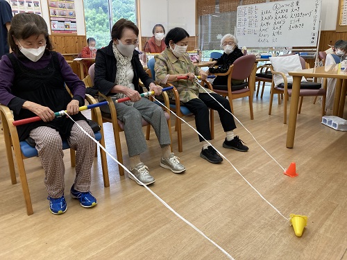 また、室内では「い~と~巻き巻きゲーム」を開催し、大いに盛り上がりました。今回のブログではこのゲームの様子をお伝えしようと思います。