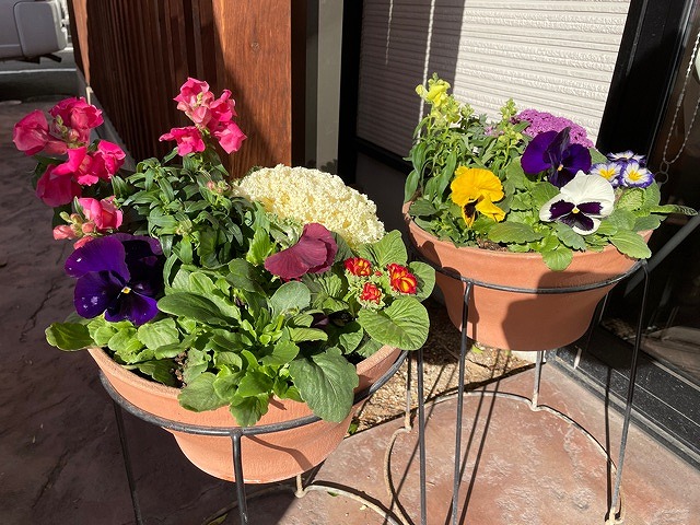 ケアプラス道後持田の玄関には新春を迎えるお花の準備ができました。