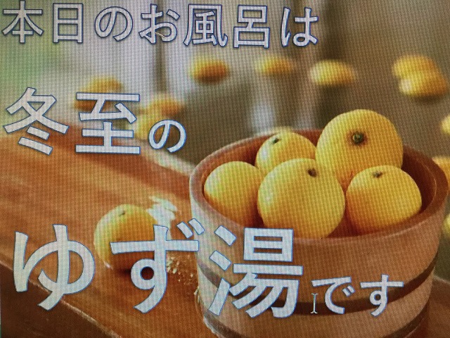12/22(木)の、冬至当日にも、ゆず湯を行いましたが、残念ながら、お風呂に入っている気持ちよさそうなお顔をお見せすることはできないのですが、皆様、いい匂いとポカポカと温かいお湯が気持ち良かった!と笑顔でしたよ。
