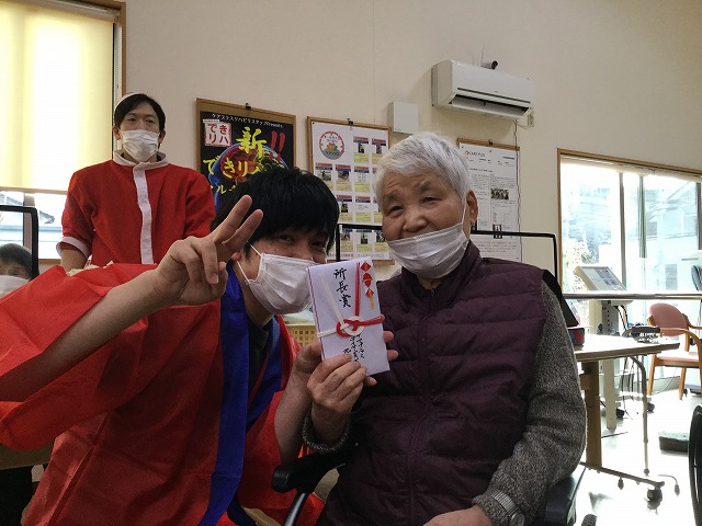 ビンゴの金一封と共に、差し上げています。「少し早いお年玉やね!」と、嬉しそうにされていましたよ。