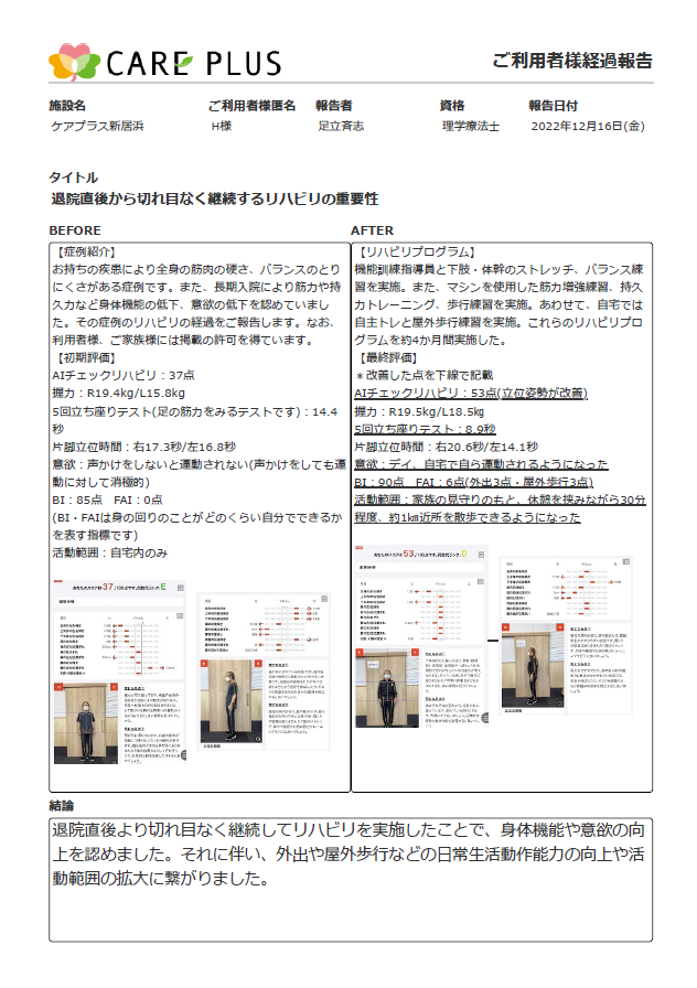 今年もケアプラスリハビリチームはリハビリを通して、満足していただけるサービスを提供してまいります。