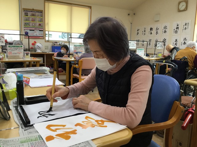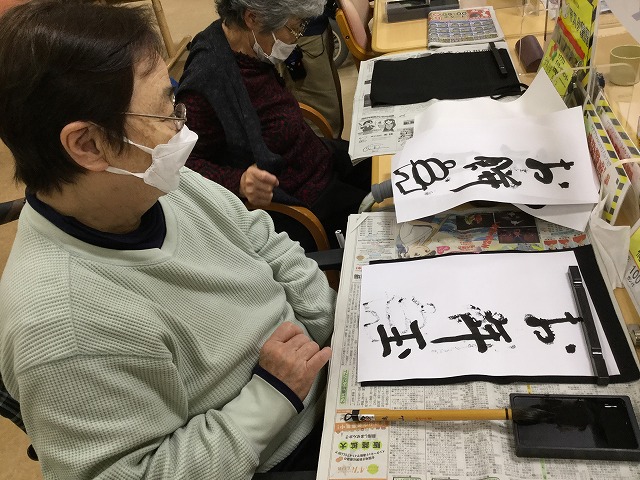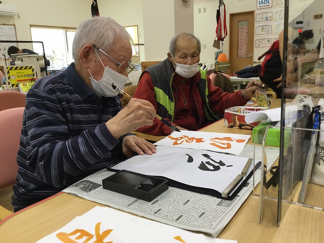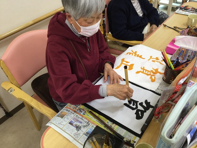私も「減量」と書初めをしたのですが、ご利用者様に「おやつ食べよらんかな?」と突っ込まれてしまいました。素早い突っ込みを、ありがとうございます(笑)