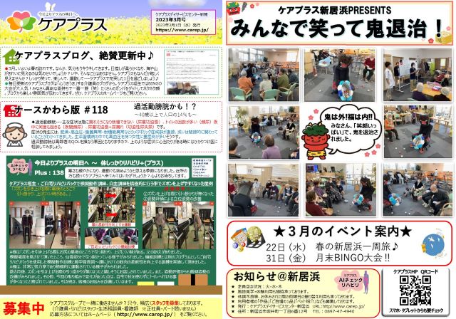 さて今回のケアプラス新聞では、2月3日に開催したイベント「みんなで笑って鬼退治♪」をご紹介します。