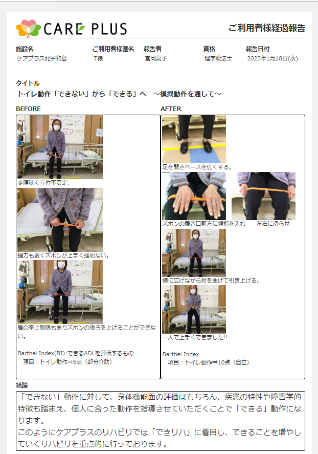 2月のケアプラスリハビリNEWSは、トイレ動作ができるようになった症例です。