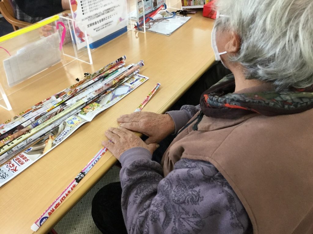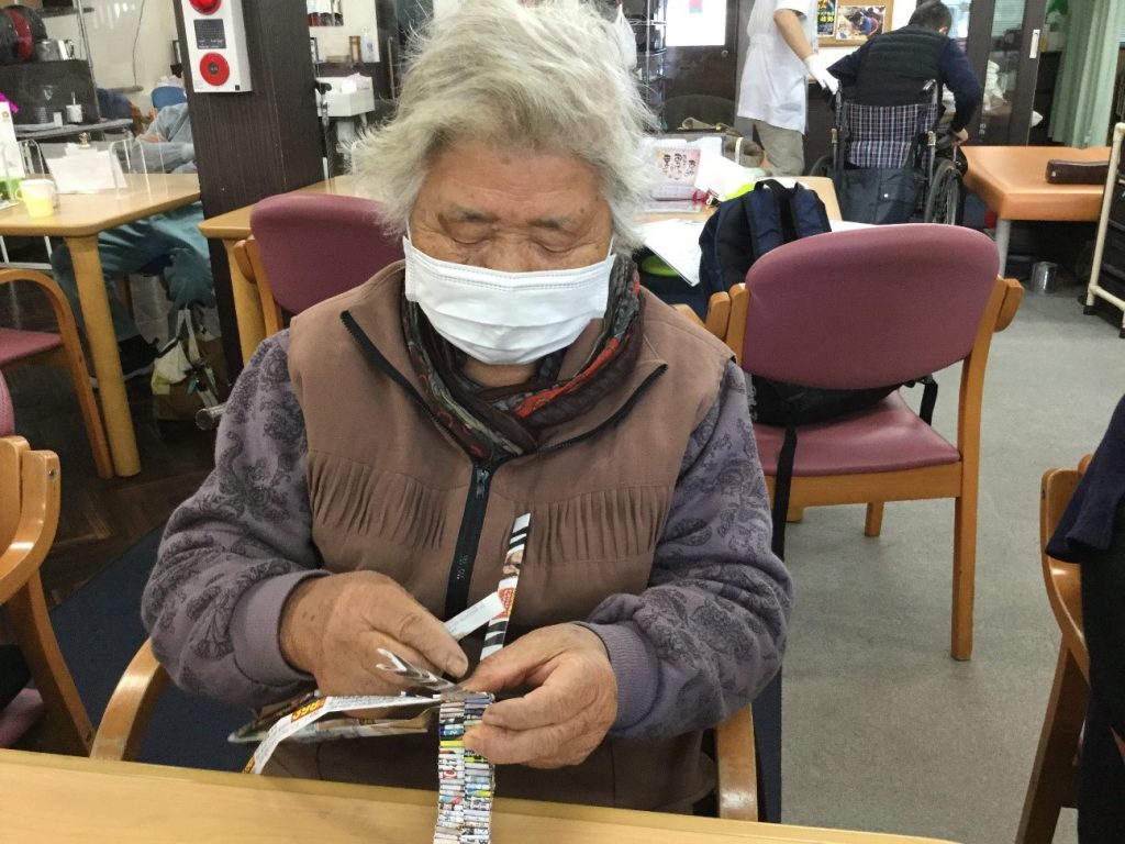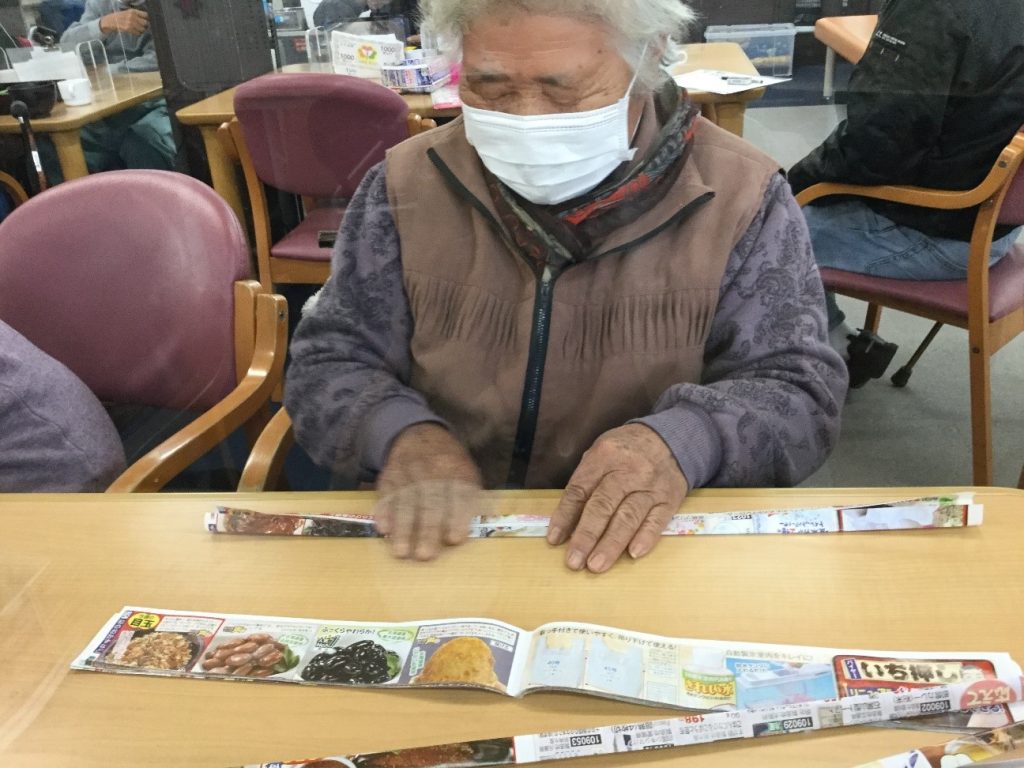 チラシで鍋敷きを作るのが趣味なS様。入院されていた際に同室だったおばあちゃんに作り方を教えて頂いたのが、作り始めたきっかけだそうです。