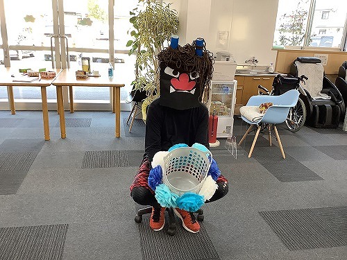 時には新聞紙(豆)が鬼にあたって鬼が痛がったり、カゴに入ると喜ばれたり大変盛り上がりました。