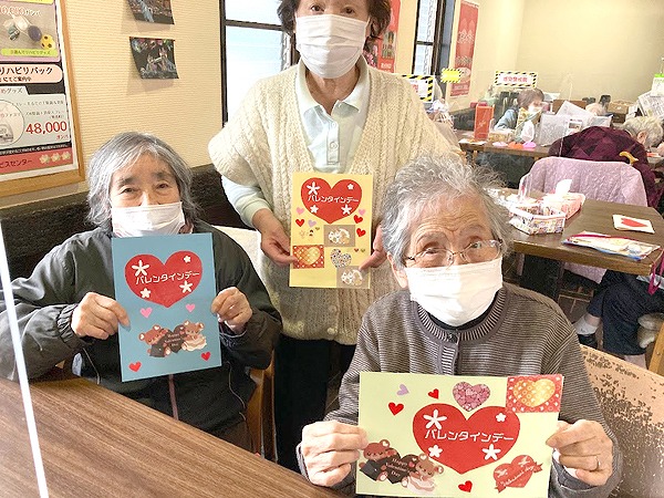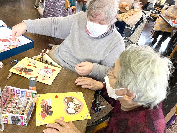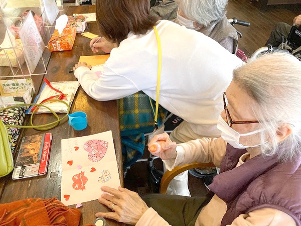 隣席の方と数字の確認をされながら楽しまれておりました。ビンゴの後には皆様にバレンタインカードと栞をお選び頂きました。