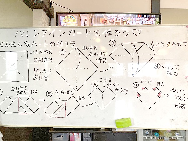 ホワイトボードに作り方の説明が書かれてあり、各利用者様はそれを見ながら製作されておりました。