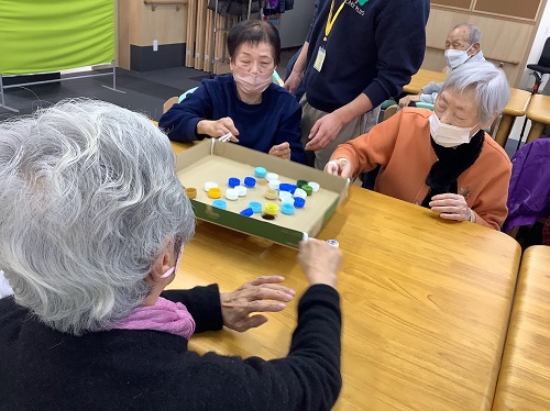今週は「どんなレクにしょうか?」等と、職員同士、案を出し合い相談仕合いながら創造力を高めています。御利用者様の個々の能力アップと認知度軽減を図る為のレクリエーションを考慮しながら提供させて頂いています。皆さんガンバ券獲得の為、日々レクリエーションに闘士を燃やされています。