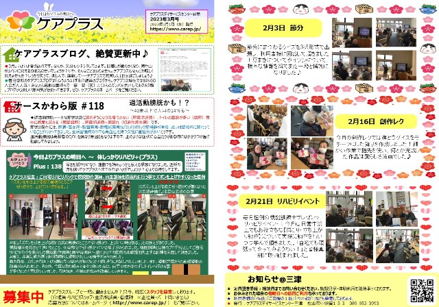 ケアプラス三津新聞 2023年3月号が更新されました!