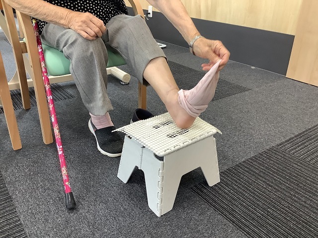 その結果、ご利用開始時に比べて股関節の動きが向上し、靴下の脱ぎ履きを含め更衣動作が自立できました。